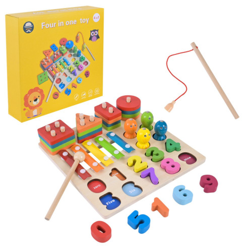 Детская деревянная игрушка "4 в 1" C9404 рыбалка, ксилофон