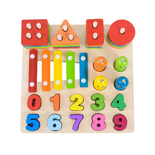 Функция: Специальные отверстия и деревянные фигурки (цифры и/или геометрические формы) с колышками.