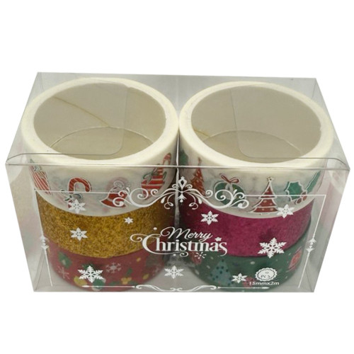 Декоративный скотч «Merry Christmas» XM-JD2273 содержит 6 бобин в тубе. Ширина каждой ленты составляет 1,5 см, а длина — 2 м. Используется для оформления творческих проектов, декора блокнотов, альбомов, комнат или упаковки подарков. Бумажная основа легко отрывается вручную и не оставляет следов.