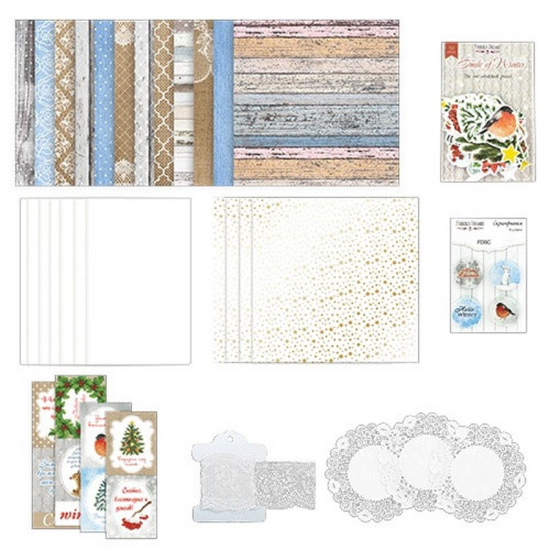 Набор для создания открыток ручной работы в технике скрапбукинг. В комплекте есть все необходимые материалы и декор. Дополнительно вам понадобятся только клей и ножницы (не включены в набор). Набор продается в аккуратной подарочной коробке.