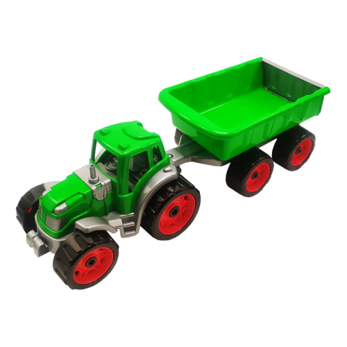 Интересная детская игрушка трактор 3442TXK с прицепом, обладающая мощными, крупными колесами, с отлично проработанным, детализированный дизайном, подарит Вашему малышу море положительных эмоций. Подобные игрушки рекомендованы для сюжетно-ролевых игр, способствующих развитию коммуникативных навыков, воображения, самостоятельности и ответственности. Детская игрушечная машинка размером 54 х 17,5 х 16 см оснащена вместительным прицепом, в который ребенок сможет поместить мелкие предметы или кубики. Все детали игрушки абсолютно безопасные, не имеют острых выступов, поэтому во время забавы Ваш малыш не сможет себе причинить вреда. Легкая, компактная автомашинка-трактор с прицепом подойдет для игры и в помещении, и на открытом воздухе в песочнице. Износостойкие материалы и безупречное качество изготовления гарантируют долговечный срок службы, благодаря чему трактор с легкостью переживет многократные испытания ребенком на прочность.
