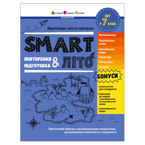 SMARTлето – практический сборник с исследовательскими задачами, развивающими уверенность и сноровку. Природа и окружающая среда, развитие внимания и математика, мышление и творчество, письмо и речь – креативные задачи на повторение и подготовку к следующему классу. А чтобы было еще интереснее, мы подготовили и бонусы: достигатель, наклейки, записную книжку для путешествий (в приложении) и рекомендации книг для чтения и слушания.