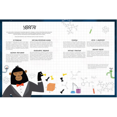 Пригласите своих друзей вместе пройти полосу препятствий в космосе или поиграть в геологические нарды. Скорость вычисления, стратегия и логика – это лишь малая часть навыков, которые вы приобретете. С последней страницы выжмите фишки, сложите кубик и сразу начинайте игру. Мир науки еще никогда не был столь весел!