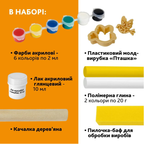 Творческий набор «Птичка» - отличный выбор для создания оригинальных украшений из полимерной глины собственноручно. С помощью молда-вырубки в форме птицы можно изготовить серьги, кулоны, подвески, браслеты, бусы, брелоки для ключей и другие декоративные аксессуары.