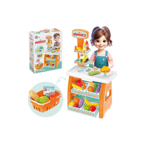 Игровой детский набор "Маркет" 0730TXK прилавок с полками, корзина, разные продукты