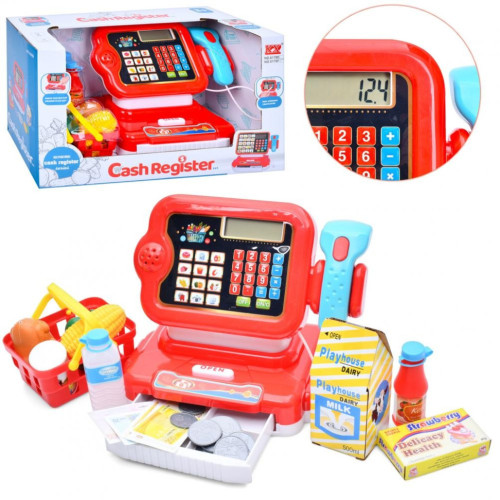 Детский игровой кассовый аппарат 6178F калькулятор, сканер, звук, свет, корзина