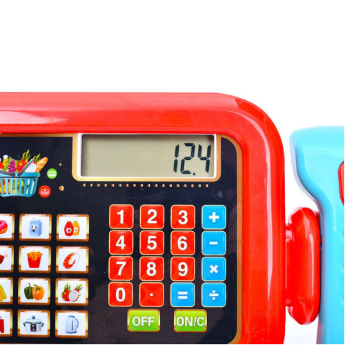 Сканер со светом и звуком: Оснащен игрушечным сканером, который при нажатии издает характерный звук и свет, имитируя сканирование товаров.