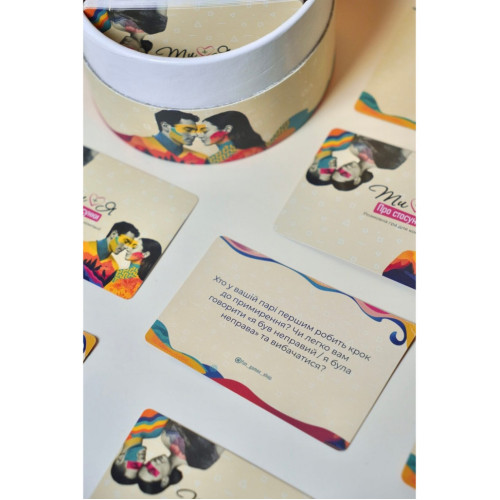 Кратко о правилах: Правила здесь очень просты: по очереди тяните карточку и отвечайте на вопросы. К обсуждению может присоединиться каждый по желанию. И неважно, в паре вы или нет — всегда есть что сказать!