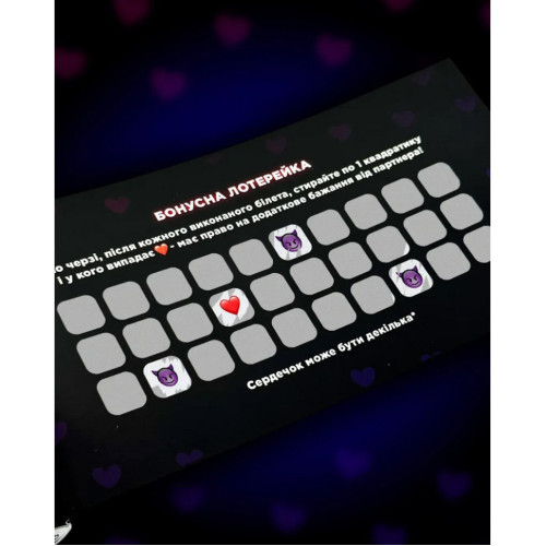 «Интимная лотерейка: Для двоих»это 30 билетов, которые вам нужно оторвать, соскрести с них скретч-покрытие и выполнить самые интимные задания