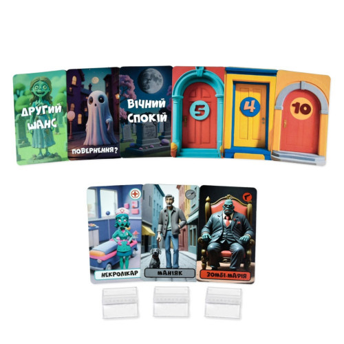 ♦ Комплектация: карточки ролей - 12 шт, карточки-номера - 12 шт, карточки возврата - 12 шт, подставки - 12 шт, инструкция.