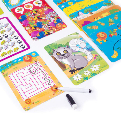 А с помощью специального маркера «Пиши-вытирай», все задания можно выполнять множество раз. Просто вытирайте надписи губкой и пишите снова.