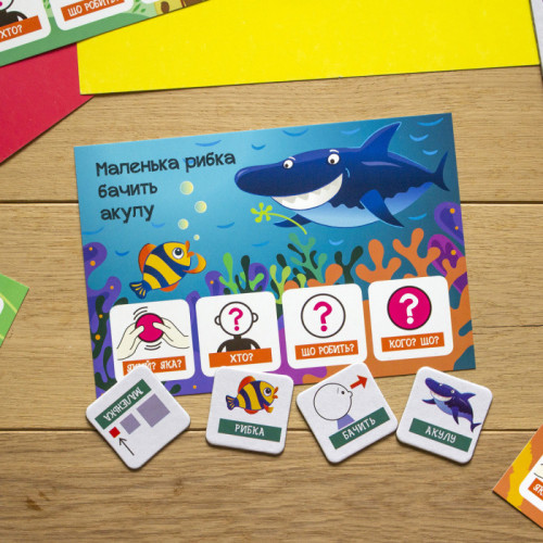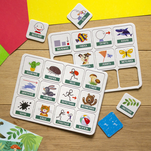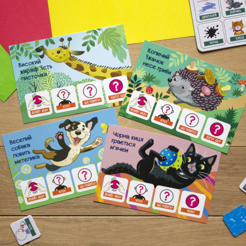 30 карточек, инструкция, коробка. 6 карточек 200х140 мм, 24 карточки 45х45 мм.