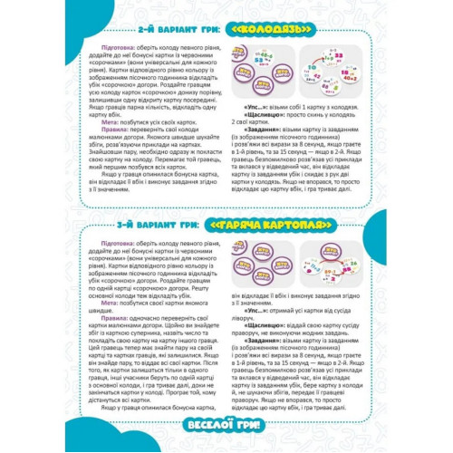 Теперь дети, кроме того, что будут развивать внимание, тренировать зрительную память и умение сосредотачиваться, еще и смогут усовершенствовать навыки чтения, сложения и вычитания, умножения, деления, расширять географические знания. Эта игра будет интересна не только детям от 5 лет, которые только что выучили буквы или состав числа 10, но и старшим, потому что имеет два уровня сложности.