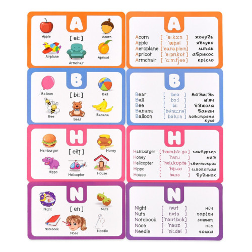 "Английская азбука" — это игровой набор для эффективного изучения английского языка и развития кругозора ребенка. В игре 26 карточек с буквами английского алфавита, 7 карточек с днями недели и 7 карточек цветов. Каждая карточка дополнена ярким рисунком, словом, транскрипцией и переводом для быстрого пополнения словарного запаса и правильного произношения.