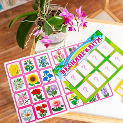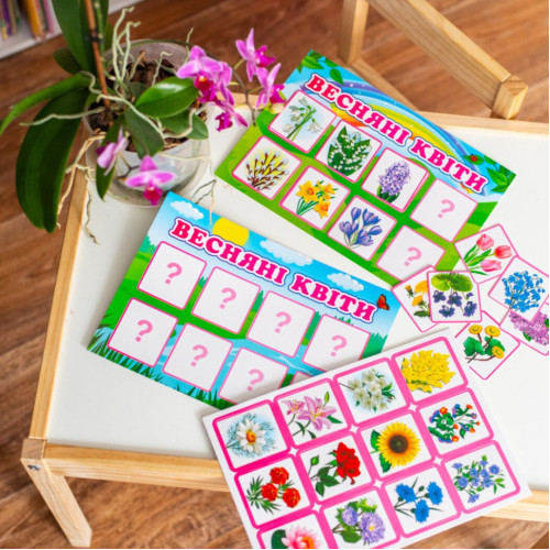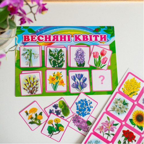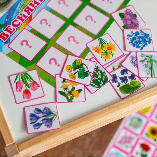 Дидактическая игра "Весенние цветы" помогает воспитателям, учителям и родителям содержательно рассказать ребёнку о цветах: почему не стоит рвать и топтать цветы, портить луковицу. Набор состоит из 2 игровых полей, 24 карточек с изображением цветов и рекомендаций к игре, которая содержит загадки. Задача ребёнка - угадать название цветка, найти его изображение и разместить на игровом поле. Игра предназначена как для работы с группой детей, так и с одним ребёнком.
