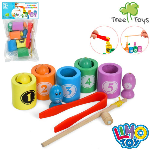 Деревянная игрушка магнитная рыбалка MD 1939 с удочкой и пинцетом.