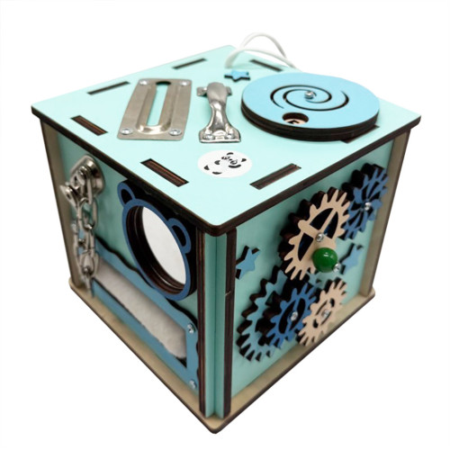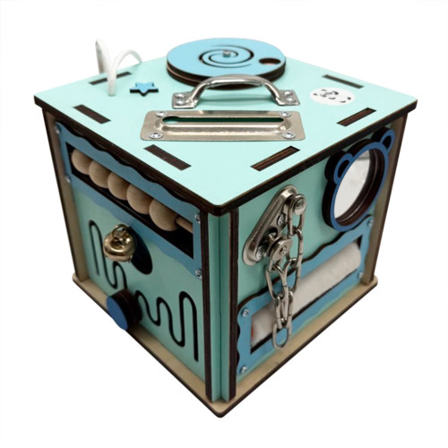 Бизикуб имеет много интересных деталей, способствующих всестороннему развитию ребенка. Он изготовлен из качественных, безопасных материалов, прошедших все необходимые сертификации. Все части, включая подвижные элементы, прочно закреплены, что гарантирует надежность и безопасность игрушки.