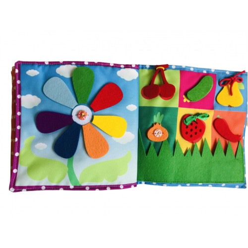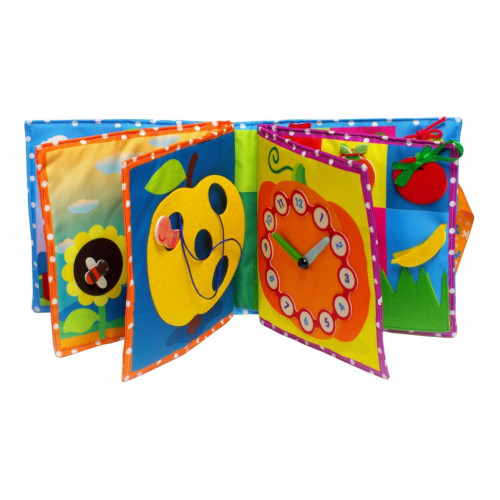 Играя с мягкой книгой, ребенок может освоить счет, буквы, времени года, цвета и будет работать над развитием мелкой моторики и тактильных ощущений.