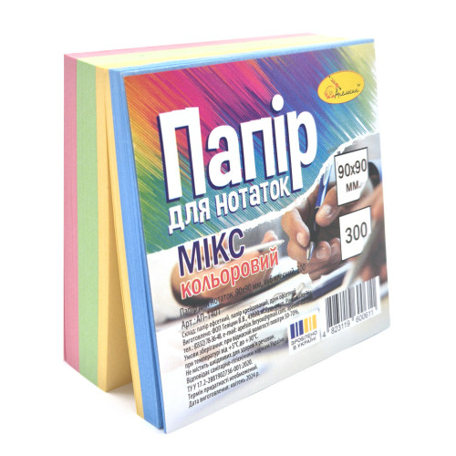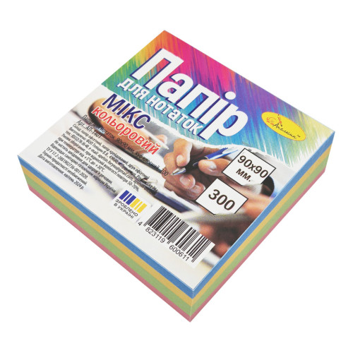 Куб состоит из 300 листов разных цветов, что позволяет удобно сортировать информацию или просто придать яркости рабочему пространству. Клееное крепление обеспечивает аккуратное отрывание листов.