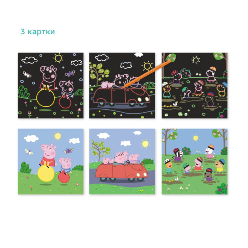 Приключения с Пеппой продолжаются в гравюре. Свинка расскажет малышам о своем дне на трех карточках-гравюрах. Дети могут почувствовать атмосферу любимого мультфильма и найдут применение своего творчества. Гравюра требует точности и смелости в движениях штыхелем, так что родительская поддержка и помощь в этом деле будет не лишней. Гавюра станет отличным объектом для проявления творчества вашего малыша.
