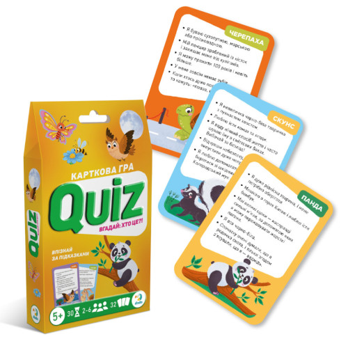 Quiz – это увлекательная карточная игра, которая превратит разгадывание загадок в веселое приключение! Попробуй по подсказкам на карте догадаться о ком или что идет речь. Каждый правильный ответ приближает тебя к победе