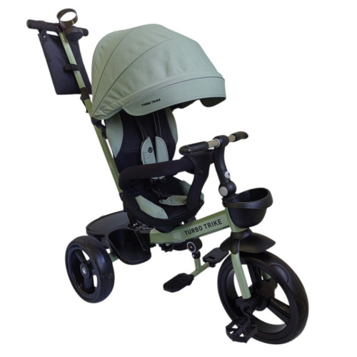 Детский трехколесный велосипед TURBO TRIKE MT 1001, EVA колеса - имеет функциональную конструкцию, его можно использовать, как коляску и как обычный трехколёсный велосипед, эта модель оснащена усиленной ручкой управления, используя её мама сможет управлять велосипедом и катать ребёнка.