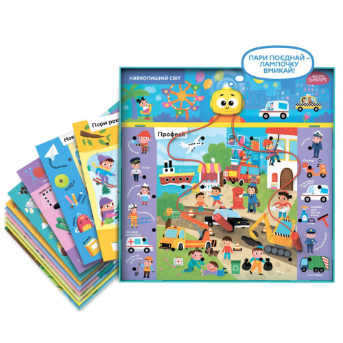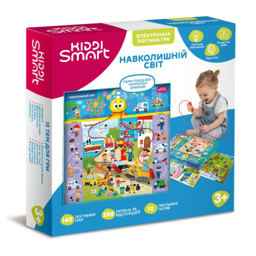 Электронная логическая игра KIDDI SMART - ВИКТОРИНА ОКРУЖАЮЩИЙ МИР - невероятная и увлекательная викторина, которая поможет ребенку узнать много интересного об окружающем мире. Надо найти и правильно совместить логические пары: зверей и их дома, времена года и занятия, людей и профессии, блюд и их ингредиенты, и многое другое!