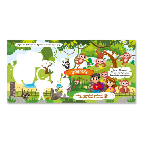 В ней ребенка ждут увлекательные сюжеты-панорамки, где часть объектов скрыта и «оживает» только тогда, когда провести по ним кисточкой с водой, а затем снова исчезает после высыхания.
