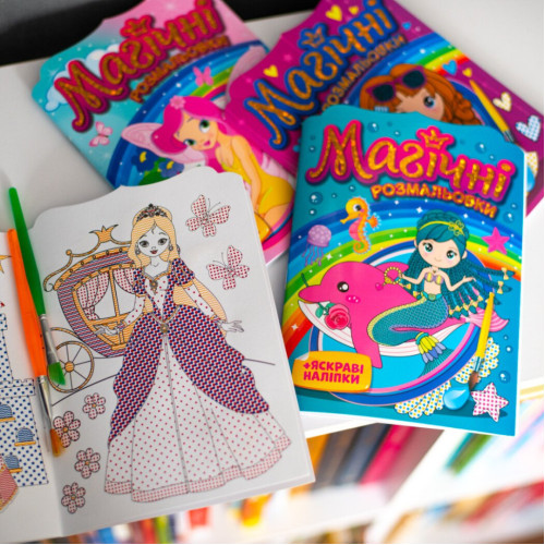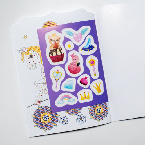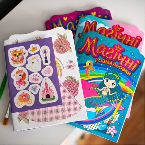 Книжечка-раскраска с яркими наклейками для девочек - волшебный формат творчества без красок и карандашей. Для создания цветных рисунков нужны только вода и кисточка - и с этим справится каждый ребенок.