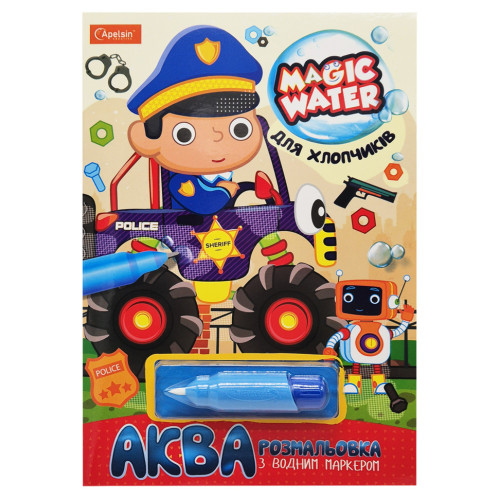 Набор для рисования водой `Magic Water` с водяным маркером не оставит равнодушным ни одного ребенка, а особенно если малыш только учится рисовать, ведь рисование здесь простое, интересное и похожее на магию – достаточно набрать воды в водяной маркер и начать водить им по рисунку. От прикосновения волшебного маркера появляются яркие цвета и рисунок `оживает`. Поэтому создать красивый и яркий рисунок по силам даже самым маленьким художникам.