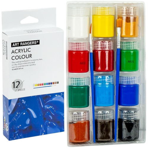 Набор 12 цветов (15 мл/тюбик). Откройте мир творчества с водостойкими акриловыми красками ART RANGERS®! Кремовая текстура обеспечивает легкое нанесение, а после высыхания краски приобретают шелковистый блеск и становятся водостойкими. Быстрое высыхание позволяет оперативно наносить слои. Идеально для художников любого уровня.