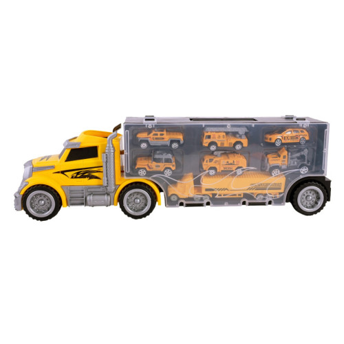 Трейлер с машинками — это увлекательный набор, который непременно понравится маленьким автолюбителям! В комплект входит трейлер с машинками, что делает игру еще более интересной и разнообразной. Трейлер изготовлен из высококачественного пластика, устойчивого к повреждениям, что гарантирует долговечность игрушки даже во время активных игр. Этот набор развивает воображение, координацию движений и позволяет детям придумывать собственные автоприключения. Идеально подходит для игры дома или на свежем воздухе. Подарите своему ребенку часы увлекательной игры с этим трейлером и машинками!