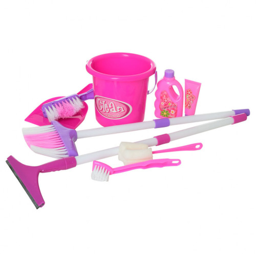 В данном наборе есть все, что нужно для увлекательной уборки: ведро, щетка для мойки окон, веник, совок, губка, щётки, бутылочки. Ребенок, привыкнув играючи делать уборку, подрастая будет с легкостью и с удовольствием поддерживать порядок в повседневной жизни.