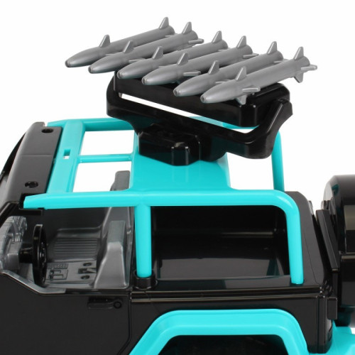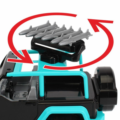 Эффектный дизайн в черно-бирюзовом цвете привлекает внимание, а подвижная ракетная установка добавляет максимум драйва к игре.