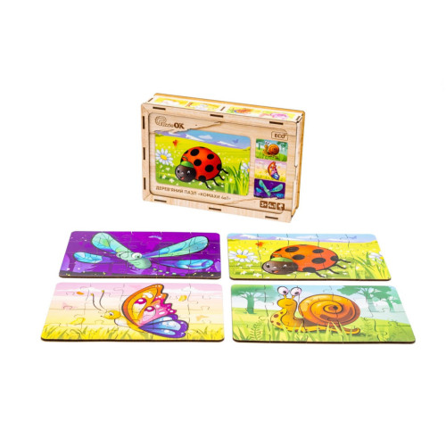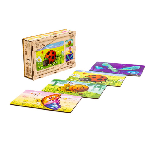 Деревянный детский пазл 4в1 "Насекомые" Puz-59557, 80 элементов