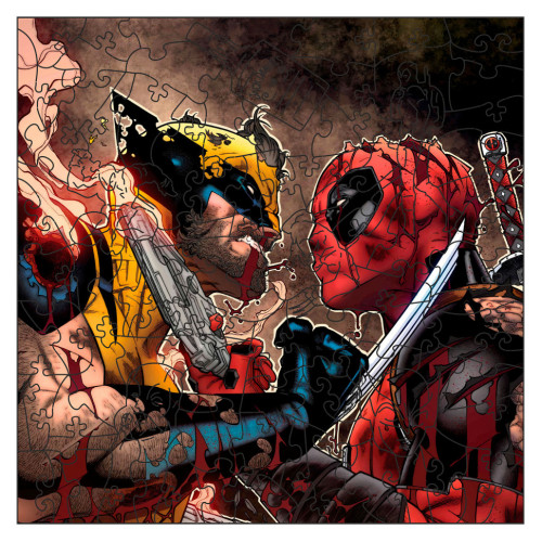 Фигурный пазл из дерева "Дэдпул и Росомаха" PZ002-A3W-AC 180-250 деталей, А3 с мешочком и лентой