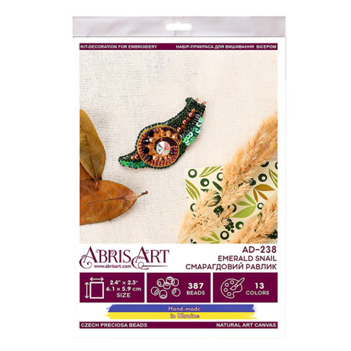 Набор для вышивки бисером украшения "Изумрудная улитка" AD-238 на натуральном холсте