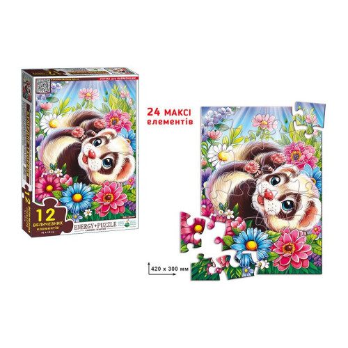Огромное игровое поле размером 300 х 420 мм разрезано волнистыми линиями на 24 элемента (каждый элемент примерно 70 х 120 мм), из которых нужно сложить целую картинку.