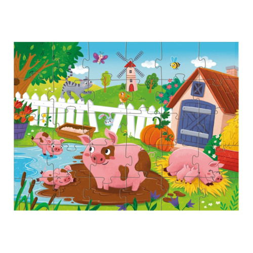 Подарите ребенку радость игры и развития с пазлом Dodo "Поросята у пруда". Складывая 30 больших картонных элементов, малыш создаст яркую фермерскую картинку с веселыми поросятами, которые играют в воде, и другими обитателями двора.