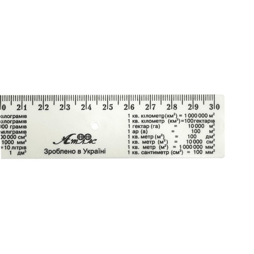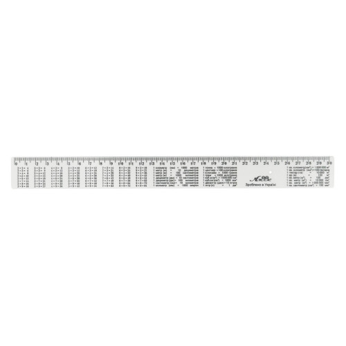 Изготовлена из гибкого, прочного, первичного снежно-белого пластика со шкалой до 30 см включительно. Дополнительно нанесена табличка умножения, что делает обучение наглядным и доступным в любой момент.