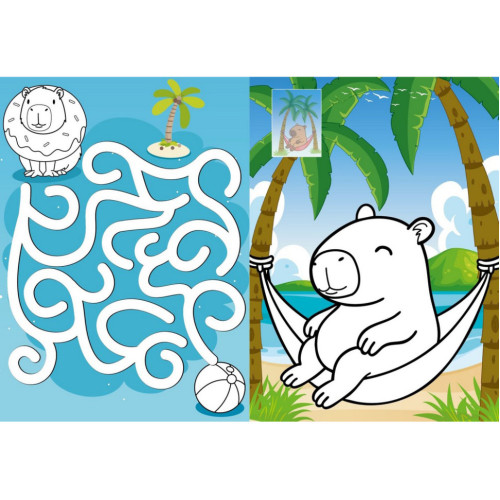 Книга-раскраска со стикерами - Капибара на каникулах для вашего творчества. Сделано в Украине.
