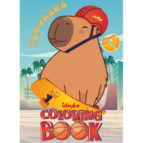 Книга-раскраска со стикерами - Капибара на каникулах для вашего творчества. Сделано в Украине.