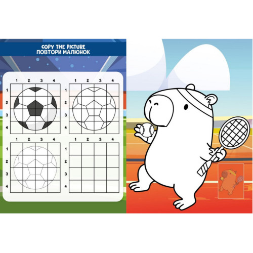Детская раскраска со стикерами "Капибара и спорт" CB23, 16 страниц