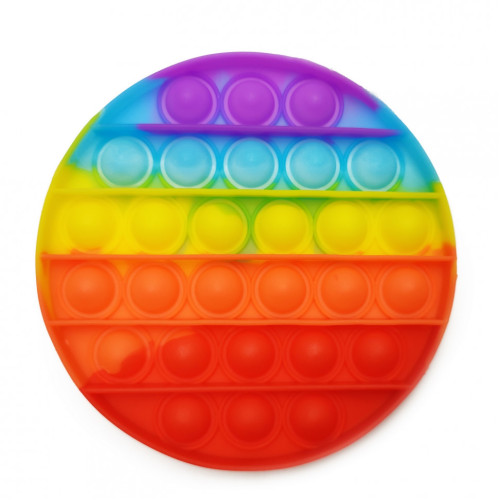 Игрушка Pop-it (Поп Ит) представляет собой силиконовый пласт круглой формы и радужной расцветки с круглыми ячейками, которые издают приятный звук при нажатии, напоминающий звук лопающихся пузырьков на упаковочной пленке. Отличительной особенностью является то, что закончив лопать пузырьки с одной стороны, вы можете перевернуть игрушку-антистресс и лопать заново!