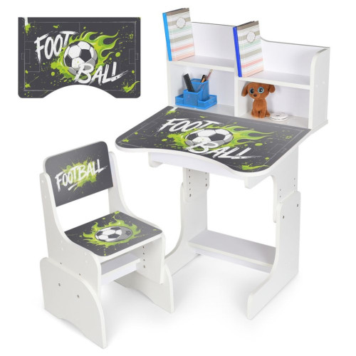 Парта N 2071 идеальное решение для маленьких школьников и дошкольников. Комплект включает компактный деревянный стульчик с тремя уровнями регулировки высоты, что обеспечивает правильную посадку ребенка на разных этапах роста. На парте изображена украинская азбука, что способствует легкому изучению букв во время занятий.