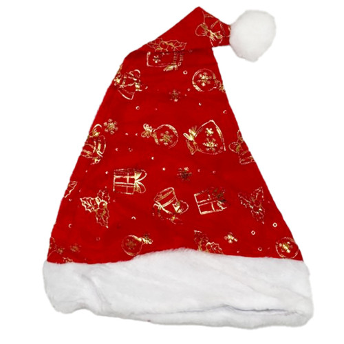 Шапка Деда Мороза с белой окантовкой изготовлена из мягкого материала и украшена блестящими золотыми узорами, придающими изделию праздничный вид. Красный фон создает яркий акцент, а пушистый белый помпон завершает образ. Объем шапки 58 см, длина 44 см — подходит для взрослых. Легкая, удобная и эффектная, она прекрасно дополнит новогодний образ, корпоратив или праздничную фотосессию.