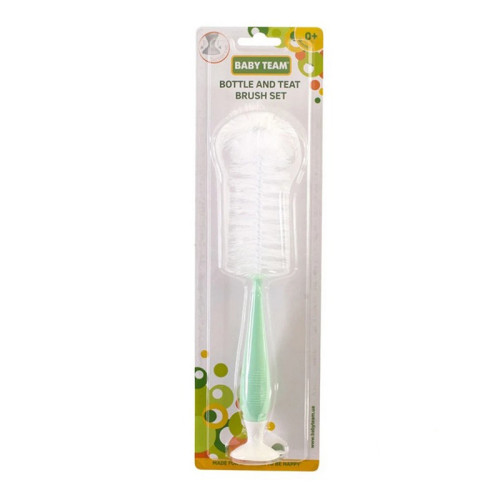 BABY TEAM Разработан для мягкой очистки бутылочек, сосок а также отлично подходит для чашек. Практичные, легкие ручки позволяет тщательно очистить детские бутылочки для кормления. Ершик для сосок тщательно устраняет малейшие остатки на внутренней поверхности соски. Ершик имеет присоску для удобства хранения. Ершики Baby team изготовлены из высококачественных и безопасных материалов, а также не содержат вредных веществ и Бисфенол А.