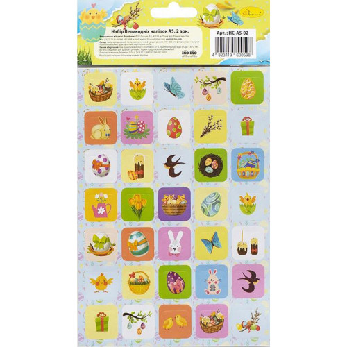 Набор пасхальных наклеек НС-А5-14-02 формат А5, 2 листа, 70 штук