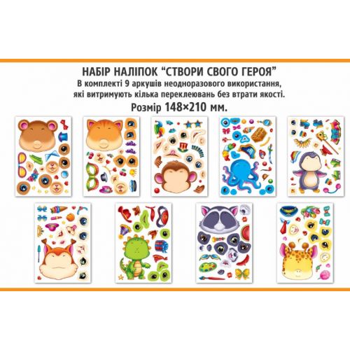 Наклейки аппликации "Создай своего героя" (9 шт)