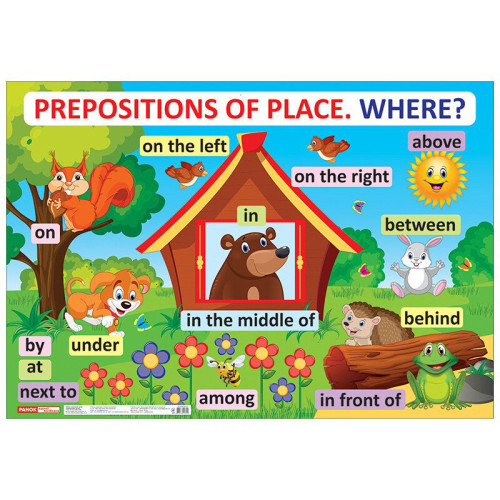 Лучше запомнить предлоги места в английском поможет демонстрационный материал. В частности, яркий плакат с проиллюстрированными примерами места. Благодаря этому запоминание значений становится обычным и легким.